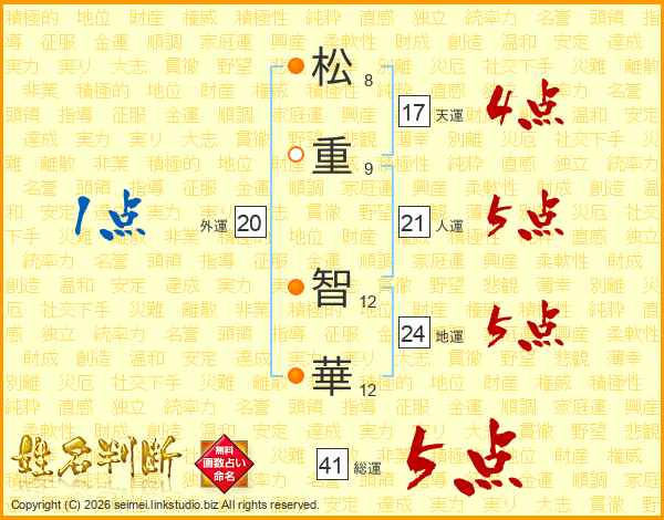 松(8画)重(9画) 智(12画)華(12画)