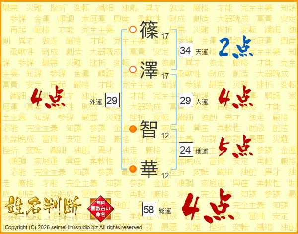篠(17画)澤(17画) 智(12画)華(12画)