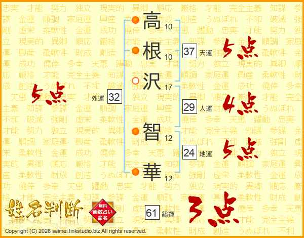 高根沢智華さんの外運は32画の5点!
