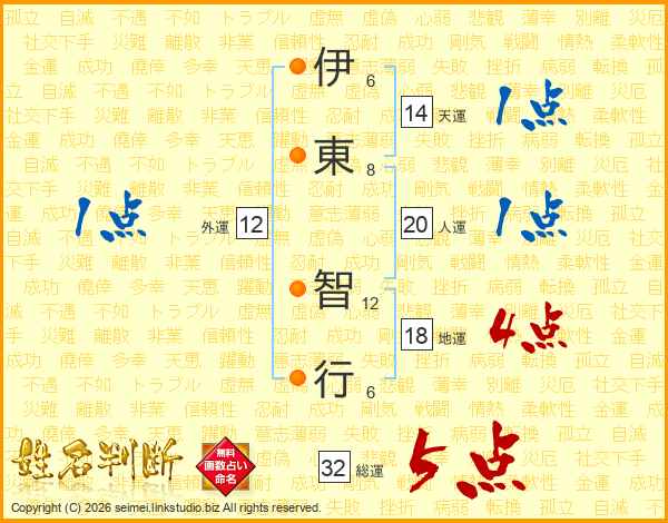 伊東智行さんの総運は32画の5点!