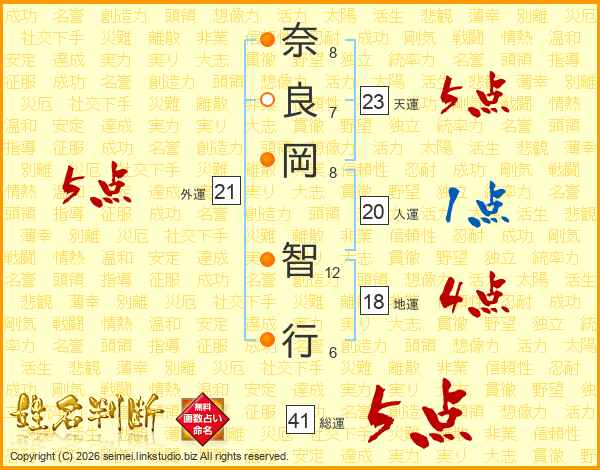 奈良岡智行さんの天運は23画の5点!