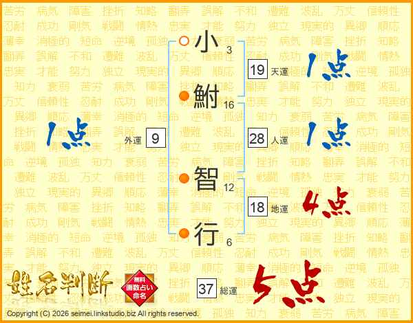 小鮒智行さんの総運は37画の5点!
