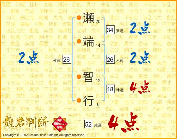 瀬端智行さんの人運は26画の2点!
