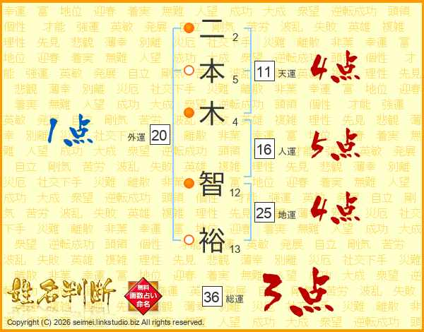 二(2画)本(5画)木(4画) 智(12画)裕(13画)