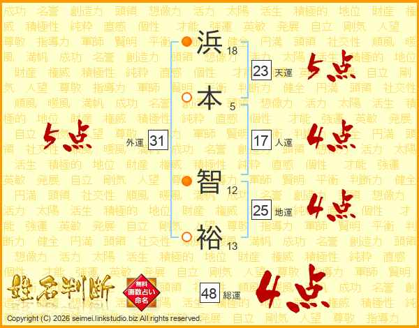 浜本智裕さんの天運は23画の5点!