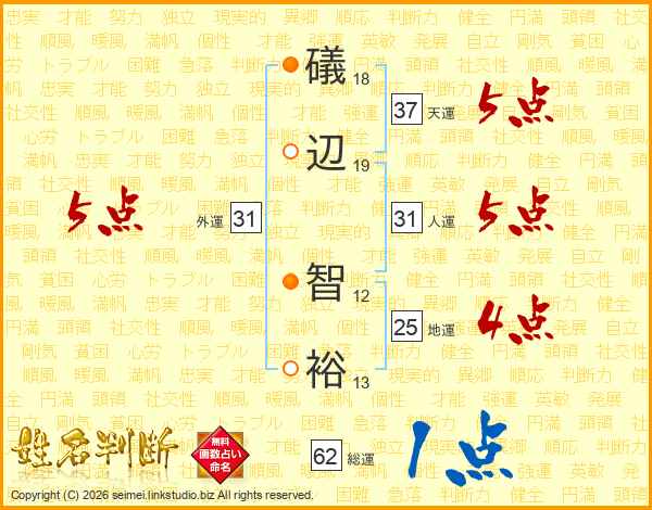 礒(18画)辺(19画) 智(12画)裕(13画)