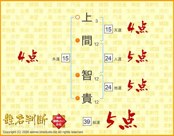 上間智貴さんの総運は39画の5点!