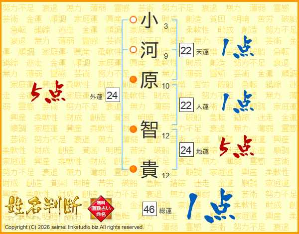 小河原智貴さんの人運は22画の1点!