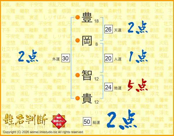 豊岡智貴さんの天運は26画の2点!