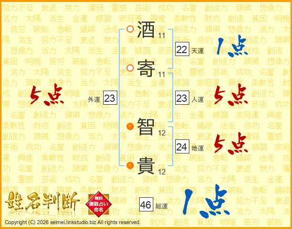 酒(11画)寄(11画) 智(12画)貴(12画)