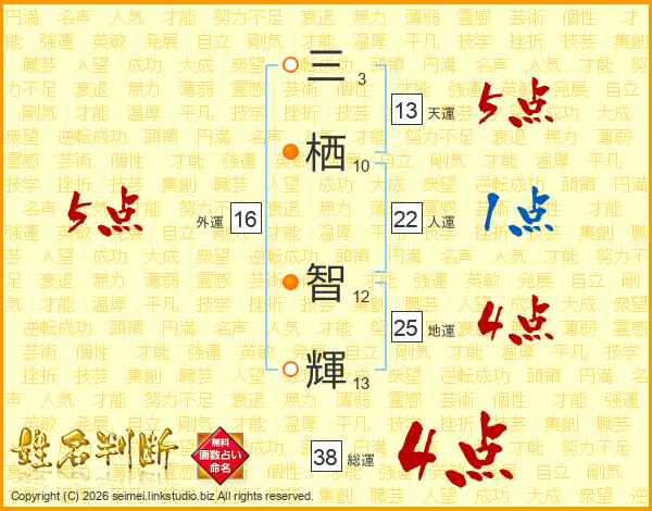 三栖智輝さんの総運は38画の4点!