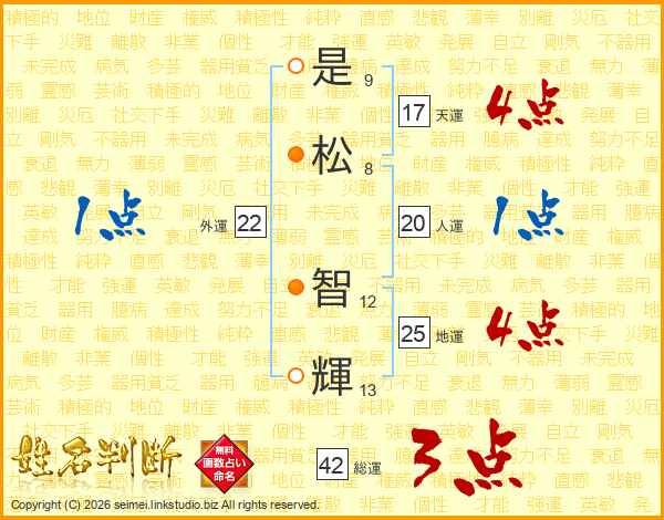 是松智輝さんの地運は25画の4点!