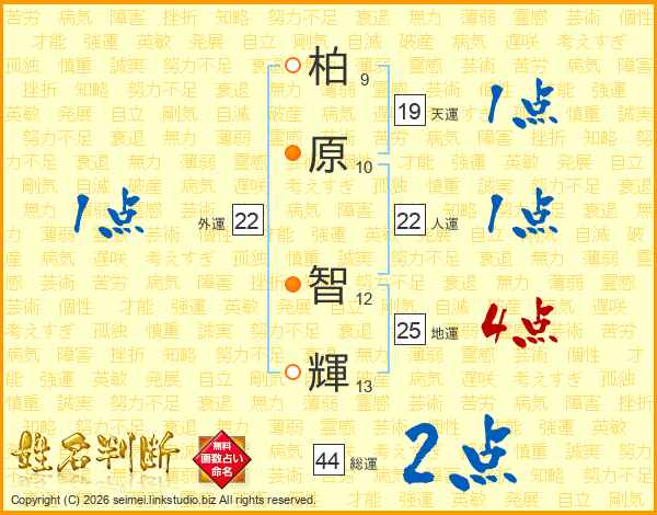 柏原智輝さんの地運は25画の4点!