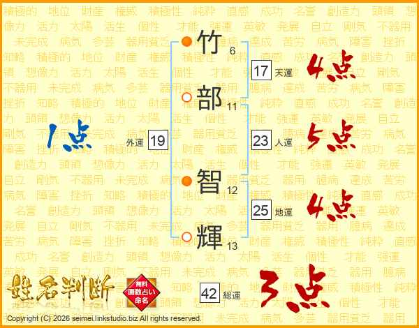 竹部智輝さんの天運は17画の4点!