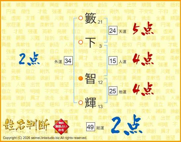 籔下智輝さんの天運は24画の5点!