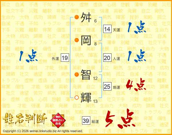 舛岡智輝さんの総運は39画の5点!