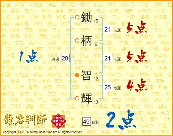 鋤柄智輝さんの総運は49画の2点!