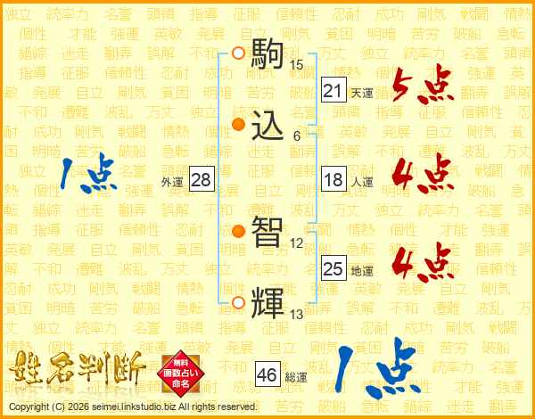 駒込智輝さんの天運は21画の5点!