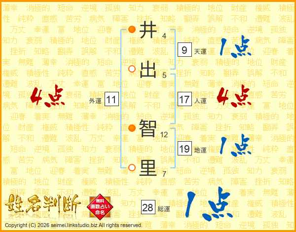 井(4画)出(5画) 智(12画)里(7画)
