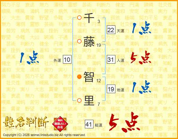 千(3画)藤(19画) 智(12画)里(7画)