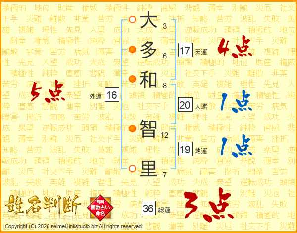 大多和智里さんの天運は17画の4点!
