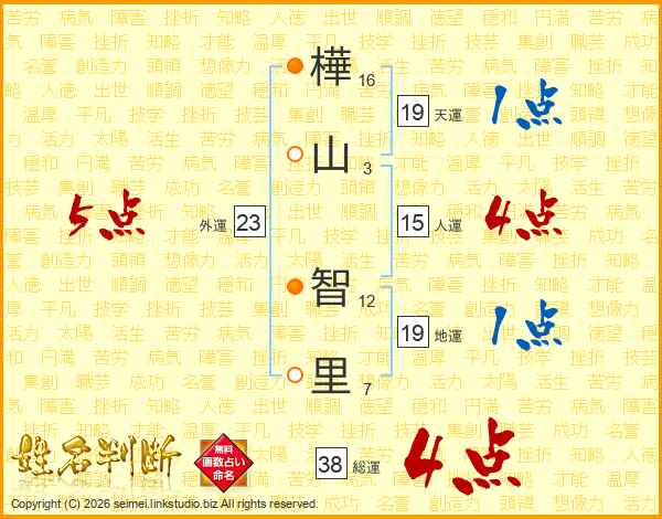 樺山智里さんの総運は38画の4点!