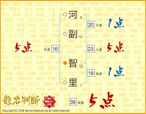河副智里さんの総運は39画の5点!
