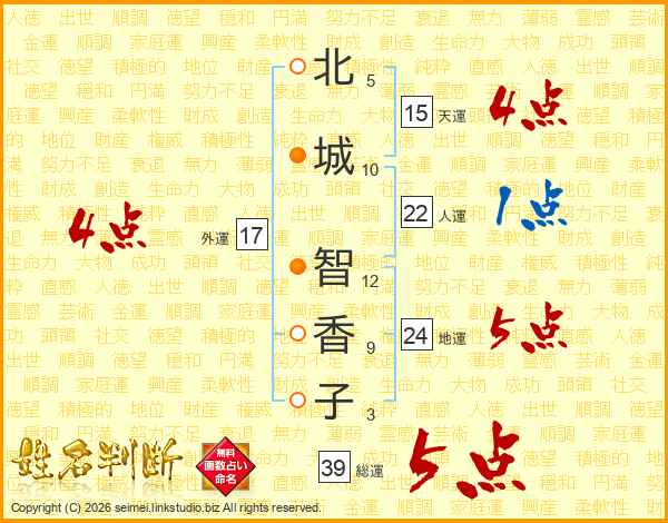 北城智香子さんの総運は39画の5点!