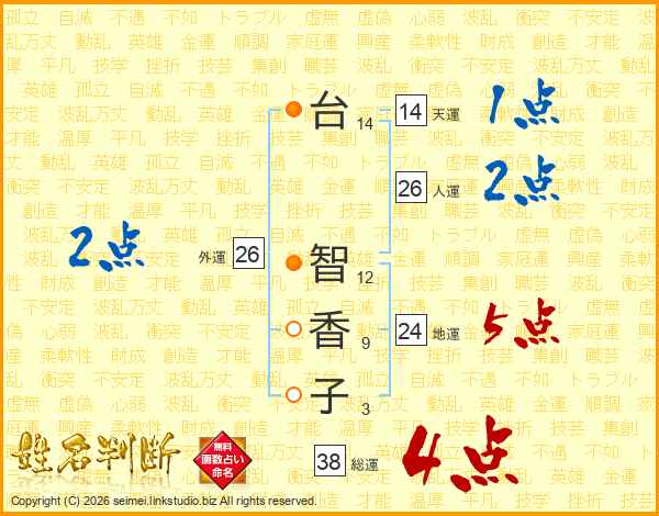 台智香子さんの総運は38画の4点!