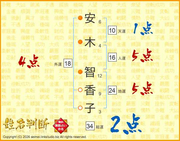 安木智香子さんの外運は18画の4点!