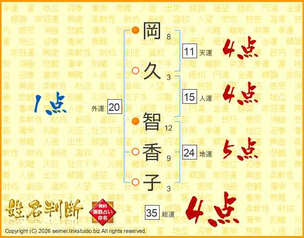 岡久智香子さんの総運は35画の4点!