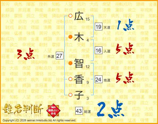 広木智香子さんの総運は43画の2点!