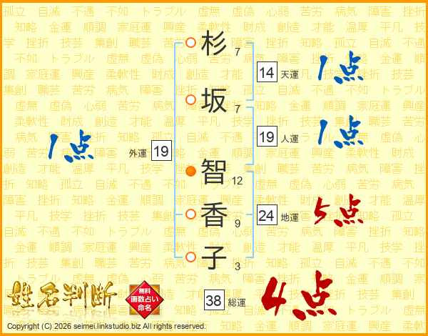 杉坂智香子さんの総運は38画の4点!