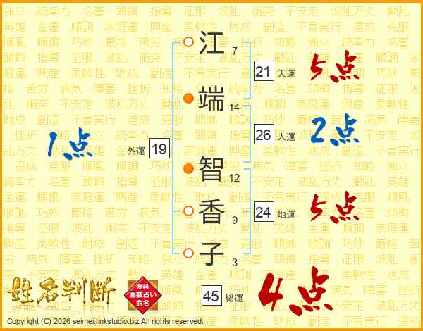 江端智香子さんの総運は45画の4点!