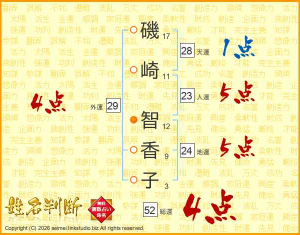 磯崎智香子さんの総運は52画の4点!