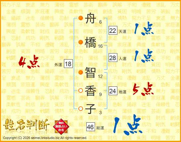 舟橋智香子さんの総運は46画の1点!