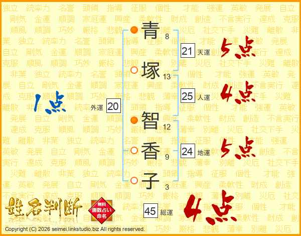 青塚智香子さんの総運は45画の4点!