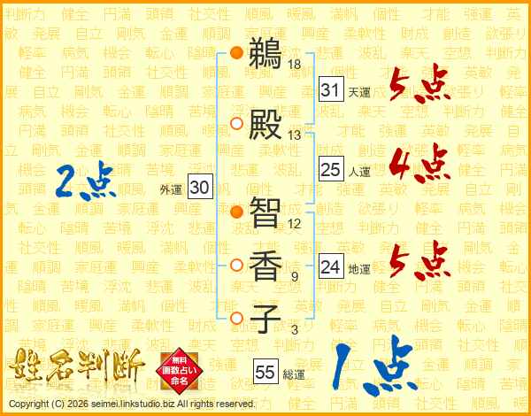 鵜殿智香子さんの総運は55画の1点!