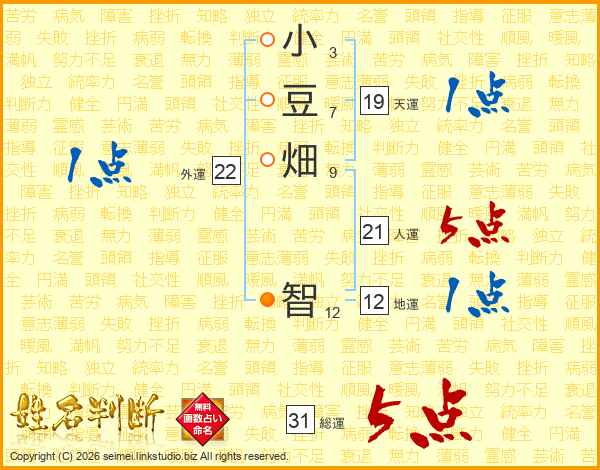 小豆畑智さんの総運は31画の5点!