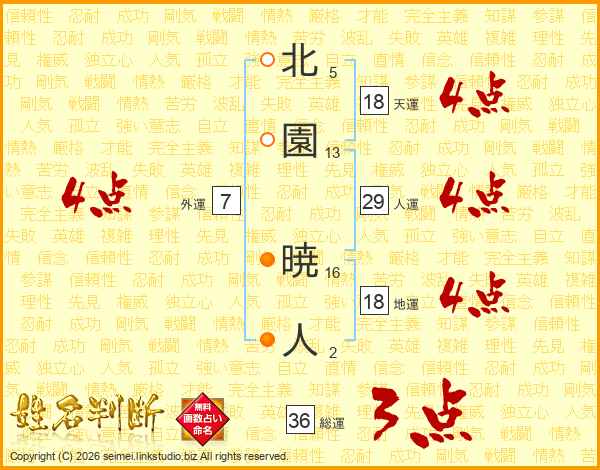 北園暁人さんの総運は36画の3点!