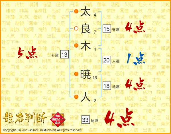 太良木暁人さんの総運は33画の4点!