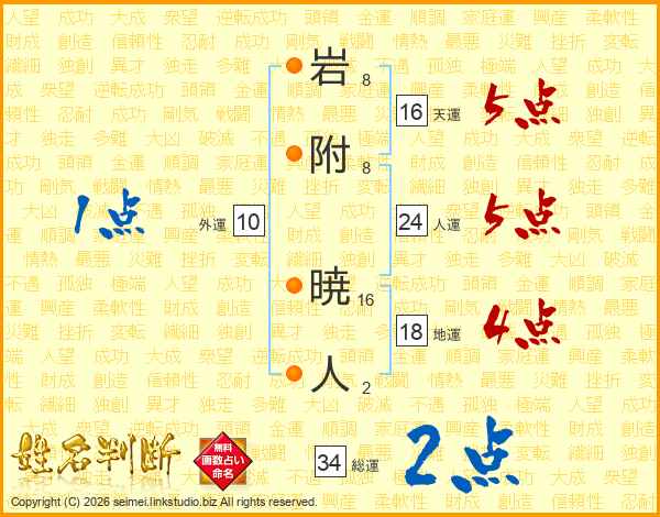 岩附暁人さんの総運は34画の2点!