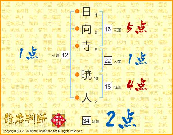 日向寺暁人さんの総運は34画の2点!