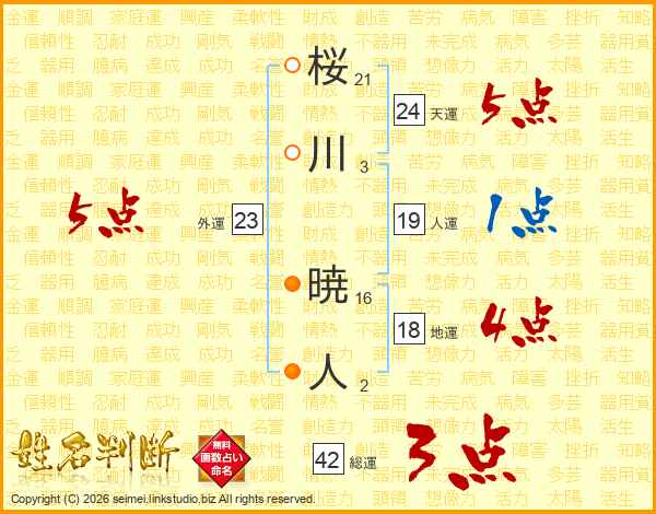 桜川暁人さんの総運は42画の3点!