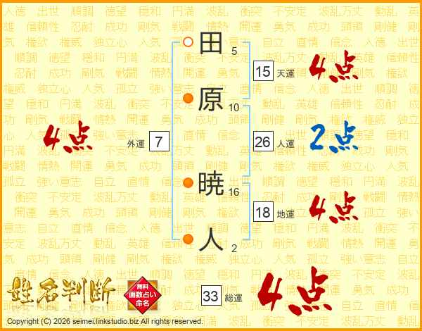 田原暁人さんの総運は33画の4点!