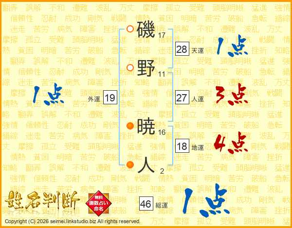 磯野暁人さんの総運は46画の1点!