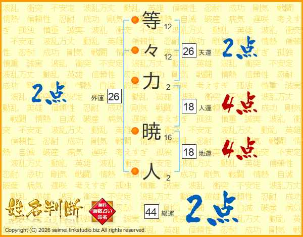 等々力暁人さんの天運は26画の2点!