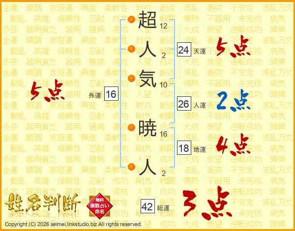 超人気暁人さんの天運は24画の5点!