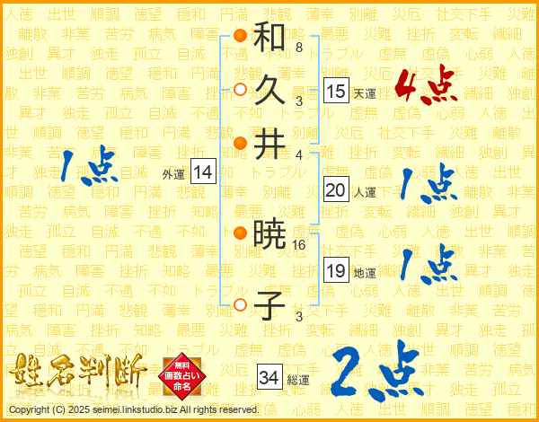 和(8画)久(3画)井(4画) 暁(16画)子(3画)
