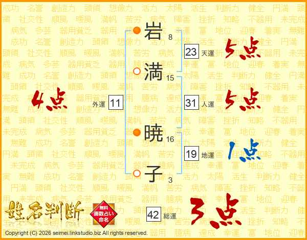 岩(8画)満(15画) 暁(16画)子(3画)
